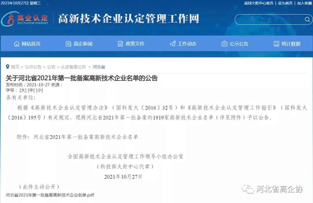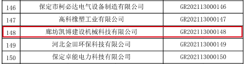 2021年10月27日,科技部火炬中心公示了《河北省 2021 年第一批備案高新技術(shù)企業(yè)名單》,廊坊凱博建設(shè)機(jī)械科技有限公司順利通過(guò)河北省高新技術(shù)企業(yè)認(rèn)定。高新技術(shù)企業(yè)的取得,將進(jìn)一步推動(dòng)公司自主創(chuàng)新、自主研發(fā)的進(jìn)程,從而快速推動(dòng)公司產(chǎn)業(yè)化經(jīng)營(yíng)。同時(shí),公司將充分發(fā)揮高新技術(shù)企業(yè)的引領(lǐng)作用,積極創(chuàng)新、突破自我,為公司高質(zhì)量可持續(xù)發(fā)展提供科技支撐。